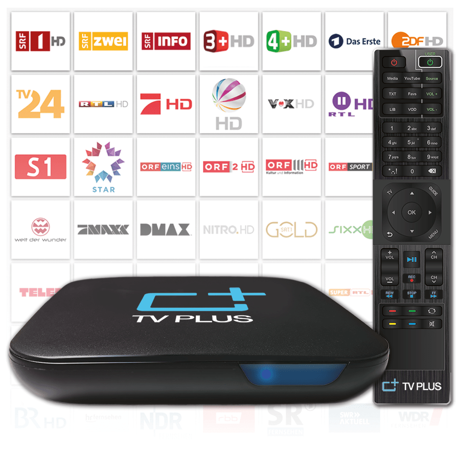 Die kleine schwarze Box hat es in sich: Nicht nur trifft ihr schlichtes und zeitloses Design den Nerv der Zeit, auch ist sie geräuschlos und punktet mit geringem Stromverbrauch. Sie bietet neben allen gängigen TV-Kanälen auch Funktionen wie Live-Pause, 7-Tage-Wiederholung, Cloud-Recording, YouTube, Netflix, spezielle Sprachpakete und Video-on-demand-content mit über 5000 Filmen und Serien. Dank innovativen Technologie verfügt TV Plus im Vergleich zu anderen Wettbewerbern über ein wesentlich effizienteres Video-Streaming und niedrigere Infrastrukturkosten – darum der sehr attraktiven Preis.